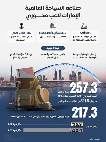 كتب فاطيمة طيبى 13 أكتوبر 2025 11:43 ص - التعليقات صناعة السياحة العالمية.. الإمارات تجارب سياحية استثنائية اعداد ـ فاطيمة طيبي يوم السياحة العالمي الذي أقرته هيئة الأمم المتحدة في 27 سبتمبر من كل عام، تواصل الإمارات في قطاعها السياحي كأداءه الاستثنائية في تحقيق أرقام قياسية على مختلف الصعد، ما يعكس تفوق النموذج الإماراتي في تقديم تجارب سياحية استثنائية حظيت بتقدير المؤسسات الدولية وإعجاب الزوار والسياح من حول العالم. حيث نجحت دولة الإمارات في تعزيز دورها المحوري في منظومة السياحة العالمية، وترسيخ مكانتها كوجهة أولى على خريطة السفر والفعاليات والاستثمارات الدولية. وقال عبدالله بن طوق المري، وزير الاقتصاد والسياحة، رئيس مجلس الإمارات للسياحة، في تصريحات لوكالة أنباء الإمارات "وام"،... ـ إن قطاع السياحة حقق مجموعة من الإنجازات النوعية مثل إطلاق "الاستراتيجية الوطنية للسياحة 2031" ، وفوز ابنة الإمارات شيخة النويس كأول إماراتية على مستوى العالم بمنصب الأمين العام المنتخب لمنظمة الأمم المتحدة للسياحة، للفترة من 2026 حتى 2029. ـ أن دولة الإمارات حلت ضمن أعلى سبع وجهات عالمية في الإنفاق الدولي للسياح، كما تصدرت المراكز الأولى عالميا في عدد من المؤشرات التنافسية المرتبطة بقطاع الطيران والسفر وعلى رأسها مؤشر جودة البنية التحتية للنقل الجوي. ـ اعتماد الشيخ محمد بن راشد آل مكتوم نائب رئيس دولة الإمارات رئيس مجلس الوزراء حاكم دبي، تصاميم مبنى المسافرين الجديد في مطار آل مكتوم الدولي، الذي يعد الأكبر في العالم، بتكلفة إجمالية تبلغ 128 مليار درهم (34.9 مليار دولار) وبطاقة استيعابية نهائية تصل إلى 260 مليون مسافر. ـ ارتفاع الناتج المحلي الإجمالي في السياحة : وأوضح وزير الاقتصاد والسياحة، أن مساهمة القطاع السياحي في الناتج المحلي الإجمالي لدولة الإمارات ارتفعت لتصل إلى 257.3 مليار درهم (70.1 مليار دولار) خلال عام 2024 أي ما يمثل 13% من الاقتصاد الوطني، وبنسبة زيادة وصلت إلى 3.2% مقارنة بعام 2023، و26% مقارنة بعام 2019 ما قبل الجائحة، لافتا إلى أن الدولة استقبلت زوارا دوليين من أسواق رئيسية أبرزها الهند بنسبة 14% من إجمالي الزوار والمملكة المتحدة 8 %، وروسيا 8%، والصين 5%، والسعودية 5%، و60% من بقية أنحاء العالم. وذكر أن إجمالي إنفاق الزوار الدوليين في دولة الإمارات بلغ 217.3 مليار درهم (59.2 مليار دولار) خلال 2024 بنسبة نمو 5.8% مقارنة بعام 2023 وبنسبة 30.4% مقارنة بعام 2019، كما بلغ إجمالي الإنفاق السياحي المحلي خلال العام الماضي 2024 الى 57.6 مليار درهم (15.7 مليار دولار) بنسبة زيادة 2.4% مقارنة بعام 2023 و41% مقارنة بعام 2019. ولفت إلى أن إيرادات المنشآت الفندقية في دولة الإمارات زادت لتصل إلى قرابة 45 مليار درهم (12.3 مليار دولار) خلال 2024، وارتفع معدل الإشغال الفندقي ليصل إلى 78% خلال العام الماضي 2024، وهو من بين أعلى المعدلات على المستويين الإقليمي والعالمي، كما وصل عدد نزلاء الفنادق في الدولة خلال 2024 إلى حوالي 30.75 مليون نزيل مقارنة بـ 28.08 مليون نزيل خلال 2023 بنسبة نمو 9.5%، ما يمثل نحو 77% من المستهدف الوطني للاستراتيجية والبالغ 40 مليون نزيل سنويا . وأوضح أن إجمالي حركة المسافرين عبر مطارات الدولة تجاوز خلال الفترة بين عامي 2015 و2024 حاجز المليار مسافر، كما ارتفع إجمالي حركة الطائرات القادمة والمغادرة إلى أكثر من 6.4 مليون حركة، فيما ارتفع عدد الزوار الدوليين للإمارات من نحو 15 مليون زائر في العام 2014 إلى ما يزيد عن 29 مليون زائر في العام 2024. يذكر أن مطارات الدولة استقبلت خلال الثمانية أشهر الأولى من العام 2025 نحو 102.9 مليون مسافر، بنسبة نمو بلغت 5.3% مقابل 97.9 مليون مسافر عن الفترة نفسها من العام 2024. ـ حجم الاستثمارات السياحية: وقال عبدالله بن طوق، إن حجم الاستثمارات السياحية التي جذبتها الدولة بلغت 28.8 مليار درهم (7.8 مليار دولار) خلال 2023، وزادت إلى 32.2 مليار درهم (8.8 مليار دولار) خلال 2024، ومن المتوقع أن تصل إلى 35.2 مليار درهم (9.6 مليار دولار) خلال 2025. وأوض