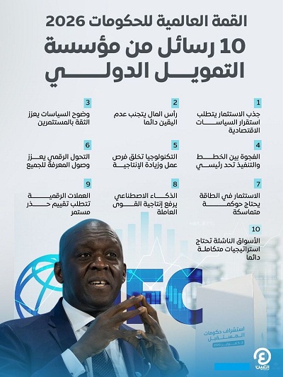 كتب فاطيمة طيبى 11 فبراير 2026 10:07 ص - التعليقات المدير العام لمؤسسة التمويل الدولي يقدم رسائل حاسمة للاستثمار بالأسواق الناشئة