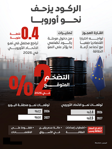 اعداد ـ فاطيمة طيبي تتزايد المخاوف داخل الاتحاد الأوروبي من دخول الاقتصاد في حالة ركود تضخمي، في ظل الارتفاع الحاد في أسعار الطاقة نتيجة تداعيات الحرب على إيران، وهو ما يهدد بتباطؤ النمو وارتفاع التضخم في آن واحد، وسط سيناريوهات قد تكون أشد إذا طال أمد الأزمة. قال المفوض الاقتصادي للاتحاد الأوروبي، فالديس دومبروفسكيس، إن اقتصاد التكتل معرض لخطر الركود التضخمي نتيجة الارتفاع الحاد في أسعار الطاقة الناجم عن حرب إيران. ووفقا لوكالات اجنبية ، في مؤتمر صحفي عقب اجتماع لوزراء مالية الاتحاد الأوروبي بشأن ارتفاع أسعار الطاقة قال : "تكتنف حالة من عدم اليقين الشديد التوقعات المستقبلية، لكن من الواضح أننا معرضون لخطر صدمة الركود التضخمي، أي حالة يتزامن فيها تباطؤ النمو مع ارتفاع التضخم" . وتابع: "هذا هو الحال حتى لو كانت الاضطرابات في إمدادات الطاقة قصيرة الأمد نسبيا. وفي مثل هذا السيناريو، تشير تحليلاتنا إلى أن نمو الاتحاد الأوروبي في 2026 قد يكون أقل بنحو 0.4 نقطة مئوية عما كان متوقعا في توقعاتنا الاقتصادية في الخريف، وربما يرتفع التضخم بما يصل إلى نقطة مئوية واحدة ". وتوقعت المفوضية في نوفمبر الماضي 2025 أن يبلغ النمو في الاتحاد الأوروبي 1.4% في 2026 و1.5% في 2027، فيما كان من المتوقع أن ينمو اقتصاد منطقة اليورو بنسبة 1.2% في 2026 و1.4% في 2027، مع تقديرات بوصول التضخم إلى نحو 2% في 2026. وقال دومبروفسكيس: "إذا ثبت أن الاضطرابات أكثر جسامة وأطول أمدا، فستكون العواقب السلبية على النمو أكبر، وقد ينخفض النمو بما يصل إلى 0.6 نقطة مئوية في كل من عامي 2026 و2027" . من جانبه، قال رئيس وزراء مالية مجموعة اليورو، كيرياكوس بيراكاكيس، إنه بناء على تجربة أزمة الطاقة التي أعقبت الحرب الروسية في أوكرانيا في عام 2022، اتفق الوزراء على أن أي تدابير وطنية لتخفيف تأثير ارتفاع أسعار الطاقة يجب أن تكون مؤقتة. وأضاف في مؤتمر صحفي: "يجب أن تكون الإجراءات المتخذة الآن موجهة وعادلة وفعالة، مع إعطاء الأولوية للأسر والشركات الأكثر تأثرا. ويجب تنفيذها بسرعة، ويجب أن تظل مؤقتة، لمعالجة الأزمة دون خلق مشاكل أكبر في المستقبل . ـ المركزي الفرنسي: لسنا في اقتصاد حرب لكن اليقظة الجيوسياسية مطلوبة : أكد محافظ بنك فرنسا المركزي، فرانسوا فيليروي دو جالو، أن فرنسا لا تعيش حالياً في حالة اقتصاد حرب، رغم ارتفاع الإنفاق الدفاعي. وشدد على أهمية متابعة البنك المركزي الأوروبي للتطورات الجيوسياسية والدفاعية عن كثب. وأوضح فيليروي دو جالو خلال مشاركته في منتدى باريس للدفاع والاستراتيجية أن اقتصاد الحرب يعرف عبر معيارين رئيسيين وهما.. 1 ـ تحويل الإنتاج الوطني بشكل واسع لصالح الصناعات العسكرية . 2 ـ تمويل هذه النفقات بطرق غير تقليدية، مثل طباعة النقود، بحسب محطة "بي .إف.إم" الفرنسية. وأشار إلى أن روسيا وأوكرانيا اليوم تحقق أحد هذين المعيارين، لكنها لا تطبق الثاني بالضرورة، في حين أن فرنسا تواجه مجرد زيادة في الإنفاق الدفاعي دون اللجوء إلى أساليب تمويل غير معتادة. كماأشار محافظ بنك فرنسا إلى أن البنك المركزي الأوروبي أصبح يولي اهتماما أكبر للتطورات الجيوسياسية والدفاعية، حيث عقدت في الأشهر الستة الماضية ندوتان مع خبراء في المجال لمناقشة التأثيرات المحتملة على السياسات النقدية ضمن مجلس المحافظين. وقال فيليروي دو جالو: "لقد قضيت 11 عامًا في هذا المجال، وخلال السنوات العشر الأولى لم نكن نقوم بذلك، لكن الآن أصبح من الضروري تحليل بيئتنا بدقة وبمساعدة الخبراء". ـ اجتماع حكومي لتقييم اقتصاد الحرب الفرنسي : أعلن مكتب رئيس الوزراء عن عقد اجتماع وزاري الخميس السادس والعشرين من شهر مارس الحالي لتقييم جهود فرنسا خلال السنوات الثلاث الماضية في إطار اقتصاد الحرب، بعد أن كان مقررا في 16 مارس وتأجل. الهدف من الاجتماع هو تقديم تقييم شامل للتقدم المحرز وتحديد المجالات التي تحتاج إلى تعزيز، خصوصا في ظل التغيرات السريعة في الوضع الدولي . كما سيتيح الاجتماع تقي